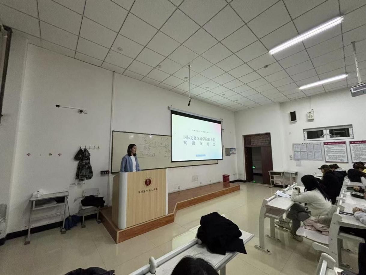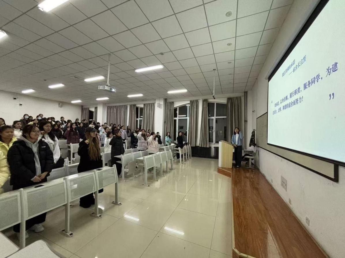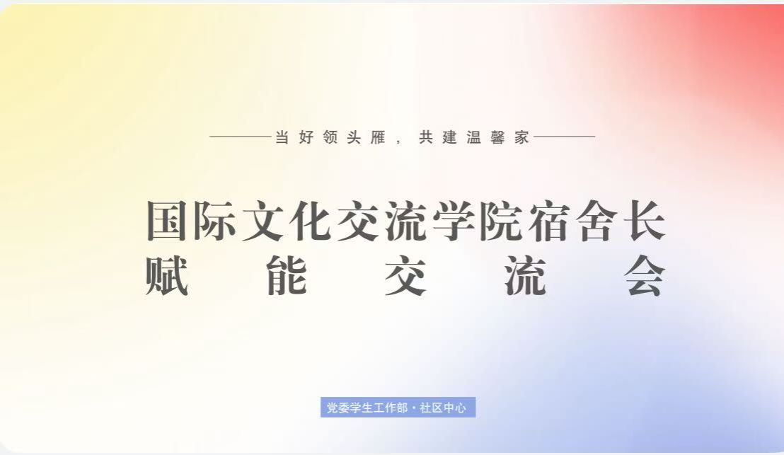 为进一步规范学生宿舍管理,明确宿舍长职责,夯实校园安全基础,营造和谐有序的生活环境,11月11日,国际文化交流学院于齐学楼126教室召开宿舍长赋能交流会。会议由学院辅导员何娜老师主持,社区辅导员刘文忻、崔昕、生欣老师担任主讲,全体宿舍长参加。