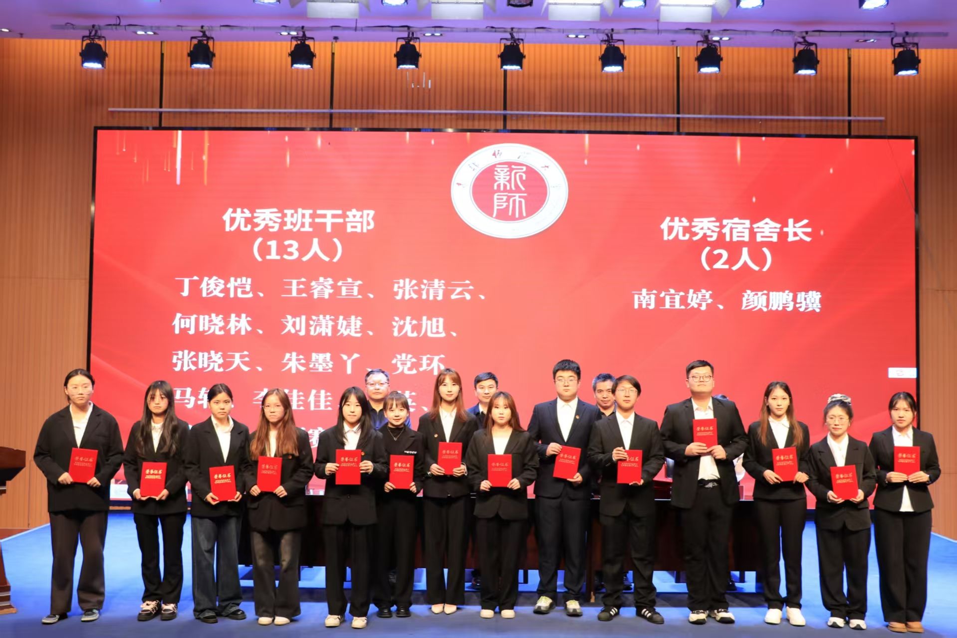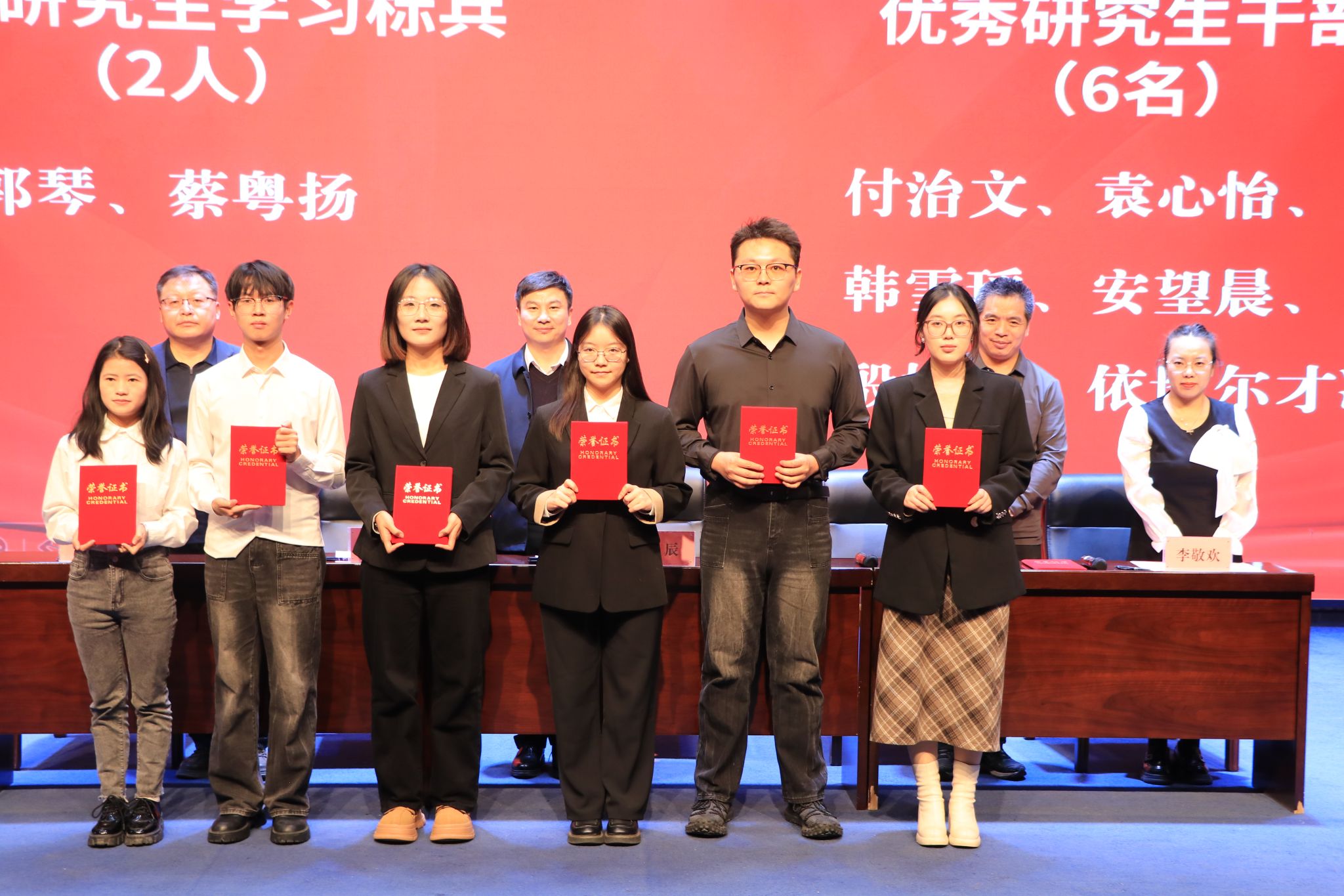 在庄重的颁奖环节,与会领导为各类别获奖学生代表颁发荣誉证书并合影留念。这份荣誉既是对同学们辛勤付出的肯定,也承载着全院师生的共同期许。颁奖仪式后,留学生代表陈伊宁、中国本科生优秀党员王建栋、研究生代表周筠先后发言,分享了他们在专业学习、跨文化交流与个人成长方面的经历与感悟,展现了学院多元融合、积极向上的育人氛围。