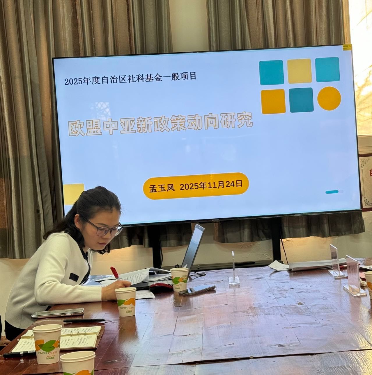 刘运红老师首先围绕课题的研究思路与框架展开汇报。专家组建议,应进一步明确核心概念与中国文献范围,突出课题服务国家战略与地方发展的现实意义;建议聚焦关键问题,采用“小切口、可操作”的研究路径,并借助大数据技术构建数据库,提升研究的系统性与实效性。孟玉凤老师随后汇报相关课题。专家肯定其选题价值,并建议清晰阐释政策背景与“新动向”内涵,强化纵向比较与多维度影响分析,注重从欧盟官网、新闻报道等权威渠道获取资料,推动研究方法的数字化与文本的系统化。同时,应聚焦课题对中国与中亚关系及区域经济发展的实际影响,提出具有针对性的策略建议。