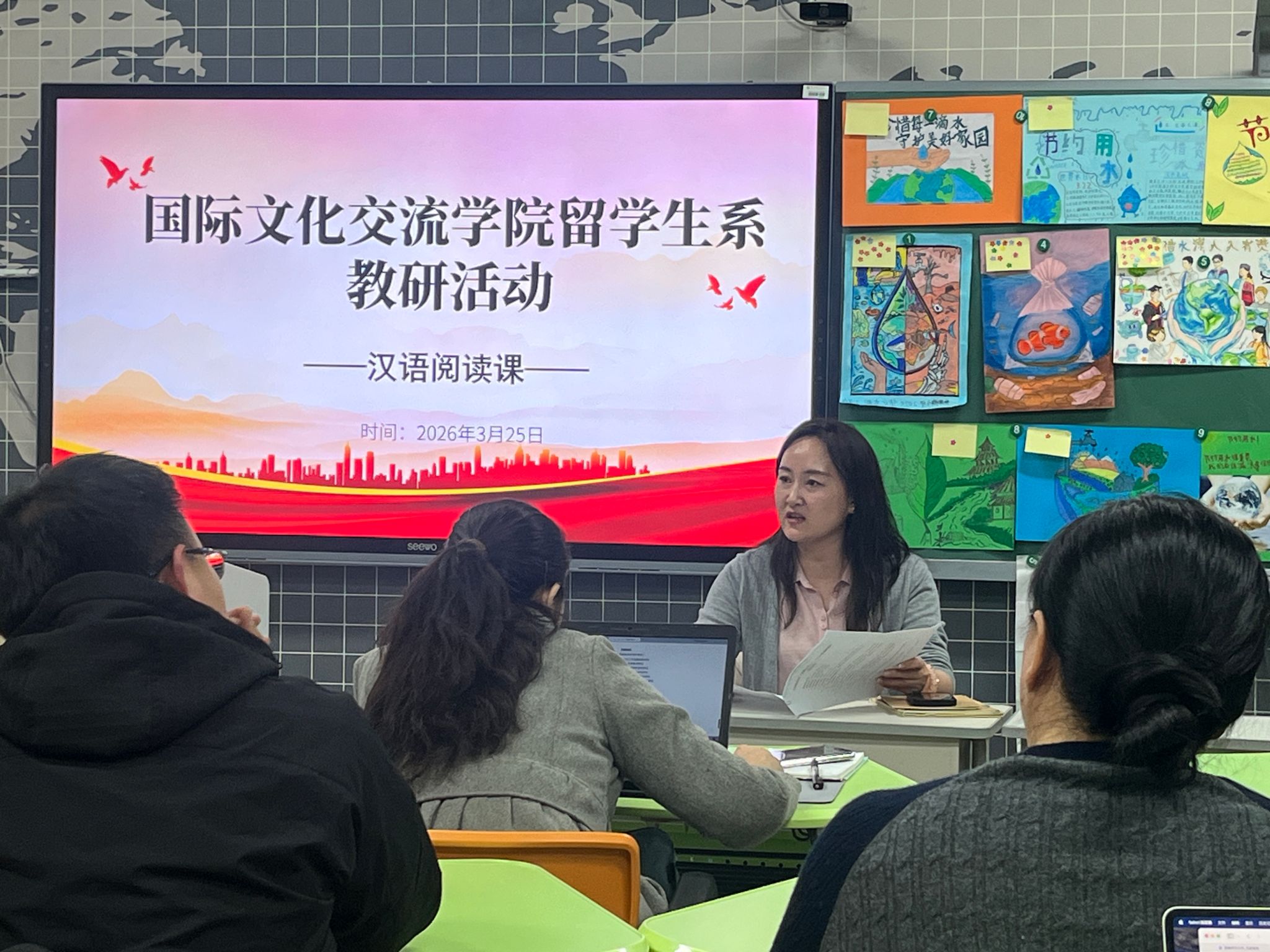 为破解留学生汉语教学中的两大核心难题,即课程思政元素与教学体系的深度融合、汉语阅读能力的系统培育,国际文化交流学院于3月25日举行专题教研研讨会。副院长邓新参加活动,学院留学生系全体授课教师参与研讨,共商教学提质增效之策。