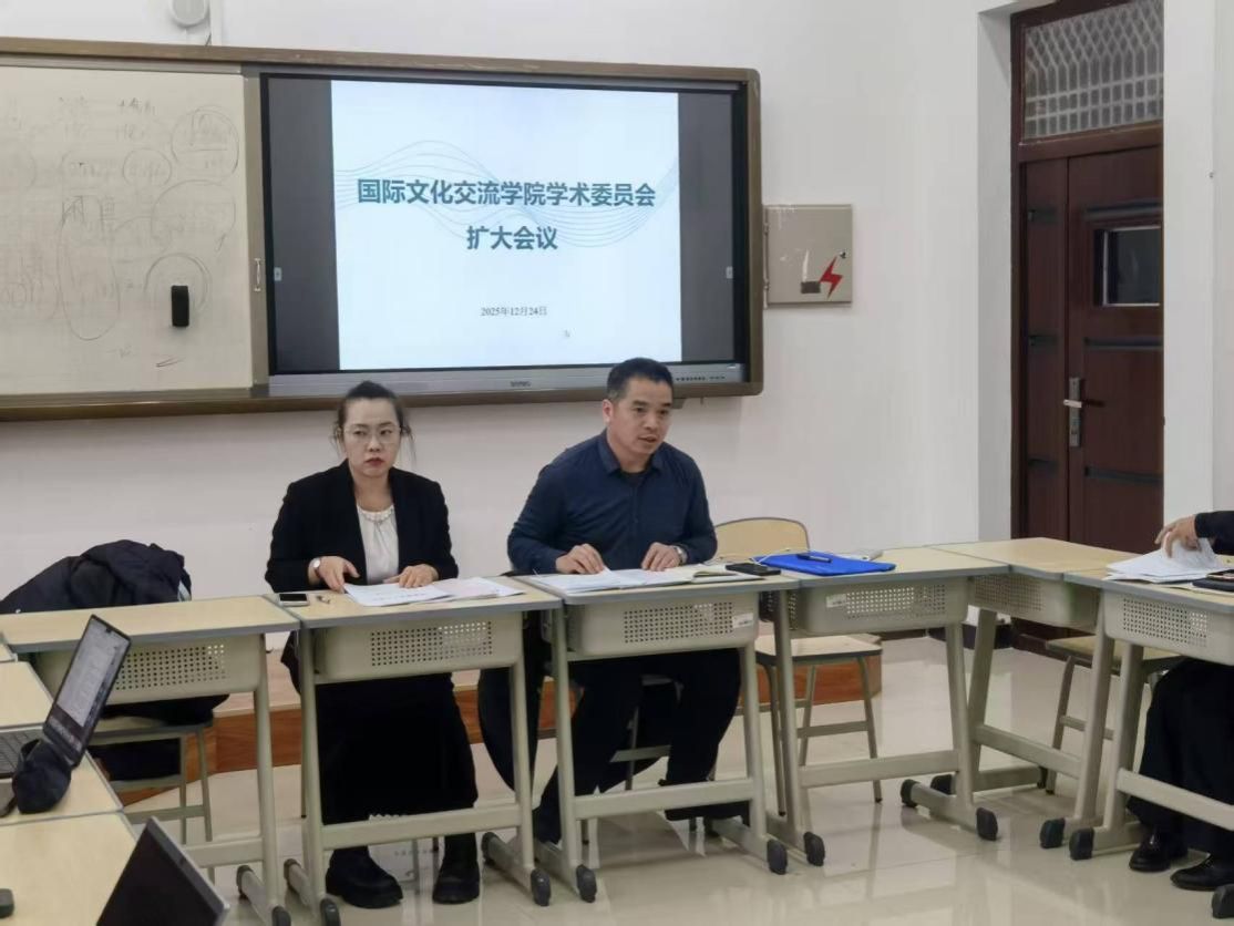 12月24日,国际文化交流学院召开本学期第三次学术委员会扩大会议,特邀部分高级职称教师与新进博士共同参与,围绕学院“十五五”规划、学科发展与平台建设等关键议题展开深入研讨。