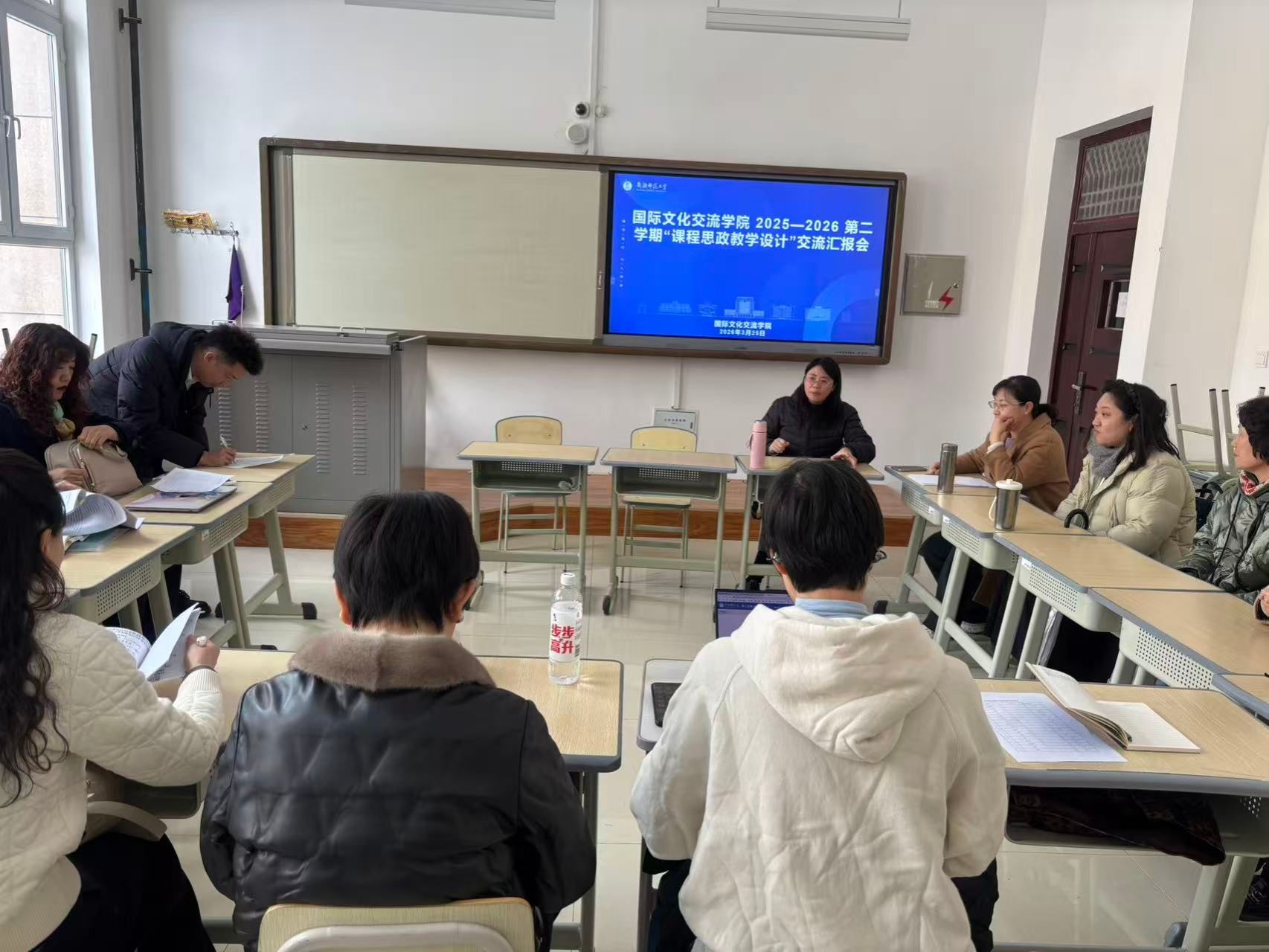 为深入贯彻落实立德树人根本任务,全面推进“大思政课”建设,3月25日下午,国际文化交流学院在1号教学楼112教室举行2025—2026学年第二学期“课程思政教学设计”交流汇报会。汉语国际教育系全体教师及教学管理人员参会,会议由系主任胡炯梅教授主持。