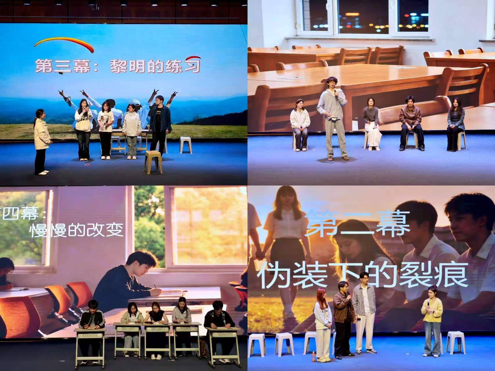 比赛聚焦大学生真实心理成长与生活困境,作品涵盖宿舍矛盾化解、学业焦虑调适、自我认同建立、亲情沟通隔阂消除、青春期情感困惑等主题。经过剧本打磨与反复排练,同学们以细腻自然的表演,将角色的内心挣扎与成长转变生动呈现,把抽象心理问题转化为具象舞台故事,引发观众强烈共鸣。评委从剧本立意、表演技巧、情感表达、心理主题契合度及舞台呈现等方面综合评分并作专业点评。最终,比赛评选出一、二、三等奖及优秀奖,评委老师为获奖班级颁发荣誉证书。