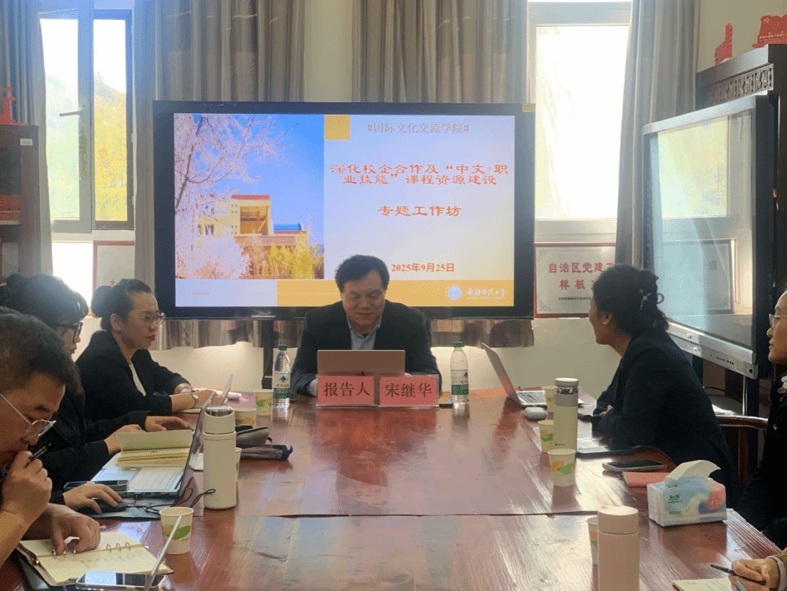 9月25日,国际文化交流学院于文科5号楼106室成功举办“深化校企合作及‘中文+职业技能’课程资源建设”专题工作坊。活动特邀北京师范大学宋继华教授担任主讲嘉宾,学院教师及研究生共同参与。